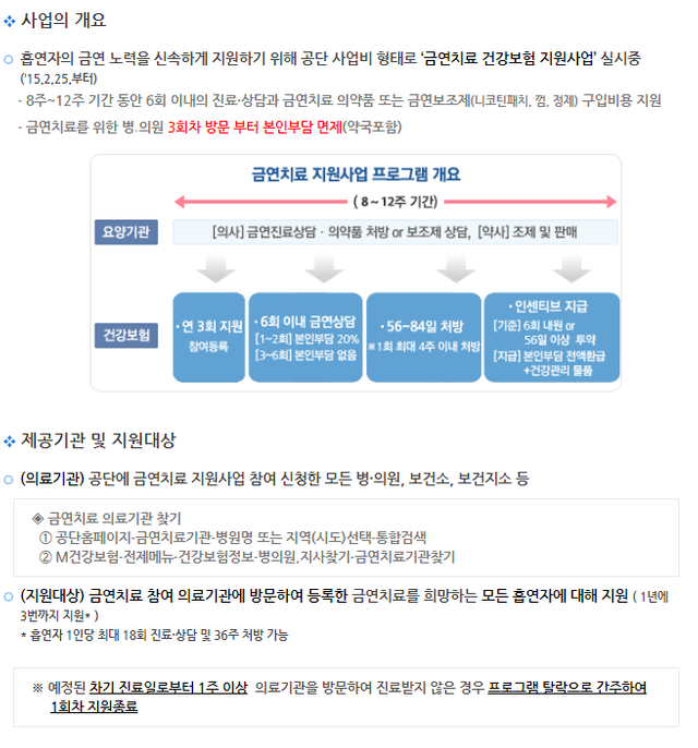 실제로 가장 효과적인 금연보조제인 ‘챔픽스’의 설명서를 보면 해독제라고 표기되어 있다. 특정 독성 물질에 만성적으로 노출된 중독을 해독하는 것처럼 니코틴 중독(담배 중독)에 대한 해독제라는 의미입니다. 챔픽스의 분자구조는 흡연욕구의 주성분인 니코틴과 유사하기 때문에 챔픽스가 담배가 아닌 뇌의 니코틴 결합 부위에 달라붙으면 니코틴과 같은 효과를 나타내어 흡연 욕구를 감소시킨다. .정부는 2015년 2월부터 보건소와 의원이 금연치료 혜택을 받을 수 있도록 지원사업을 운영하고 있습니다. 또한 금연에 성공하면 10~20만원 정도의 금연지원금을 받을 수 있다. 또한, 상담과 치료(해독제)를 받아도 금연에 실패한 장기 흡연자와 심한 흡연자는 금연 캠프의 도움을 받을 수 있습니다. 우리의 일상은 우리가 숨쉬는 공기의 소중함을 잊게 만듭니다. 환경의 중요성과 건강이 최우선이라는 것은 누구나 알고 있지만, 우리는 편리함과 익숙함에 너무 사로잡혀 작은 것을 통해 소중한 것을 지키지 못하고 있습니다. 모두가 산에서 무슨 일이 있었는지 알고 있습니다. 그러나 개인이 해결책을 찾는 것은 정말 어렵습니다. 강력한 정책과 실천이 있어야 하지 않을까요? 흡연과 함께 오는 안도감과 평안은 오래가지 못하지만 20~30년 후에 경험할 수 있는 눈물의 씨앗이 될 수 있습니다. 금연하고, 먼지 없는 세상을 만들고, 나와 내 가족의 건강을 지켜주세요. 프로그램 .