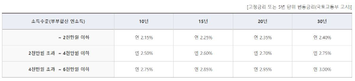 대출신청자와 배우자의 합산 총소득이 6천만원 미만일 것